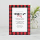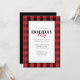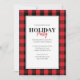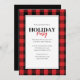 Este diseño presenta un estilo Navidad fiesta navideña simple, rústica granja en el norte, minimalista manta de búfalo mínima, cheque rojo y negro a cuadros, vacaciones de Navidades se reúnen, moderna letra de guión de caligrafía, con estilo moderno de texto de tipografía, elegante celebración rústica simplista, invitaciones de fiestas de vacaciones de Navidades, unas vacaciones simples y limpias