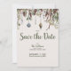 Fiesta de vacaciones SNOWY PINES Navidades Save the Date Invitación - Con una garganta de pinos acuarelas naturales, conos de pino, ramas y florales, goteando con cristales y ornamentos en un fondo blanco roto, esta invitación presenta 'Save the Date' y otro texto en una caligrafía moderna, con letras de pino verde a mano, con el resto de la invitación en una hermosa grafía de sans negros serif typotypoif. ... En la parte trasera de la tarjeta hay una nevada rama de árbol de invierno que gotea con ornamentos. El recordatorio perfecto para su próximo evento, para asegurar que sus huéspedes tengan el día libre.