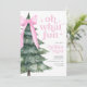 Invitación de fiesta de navidades con árbol de Navidad y arco rosado. ¡Qué divertido!