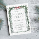 Esta elegante invitación para fiestas de vacaciones cuenta con un acuarela de pino verde acentuado por un encantador arco de cinta roja.