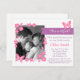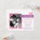 Una mariposa representa tolerancia y elegancia. Esta invitación elegante y con clase de la fiesta de bienvenida al bebé de la mariposa es perfecta para que las huéspedes de invitación celebren la llegada de la niña. La invitación tiene dos mariposas el agitar entre las flores clasificadas. Platette del color del rosa y de la púrpura. Personalice con la foto de la niña.