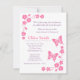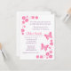 Una mariposa representa tolerancia y elegancia. Esta invitación elegante y con clase de la fiesta de bienvenida al bebé de la mariposa es perfecta para que las huéspedes de invitación celebren con la momia para ser antes de su día grande. La invitación tiene dos mariposas el agitar entre las flores clasificadas. ¡Las opciones rosadas y púrpuras del color hacen esto una invitación femenina y atractiva para que la madre sea!
