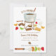 Reúne a amigos y familiares alrededor de una olla de fondue de chocolate para celebrar. Una olla de fondue de chocolate con efecto de acuarela está rodeada de todos los artículos que puedes sumergir en el fondue, incluyendo frutas, galletas Graham y malvaviscos. Una brocheta de fondue en la parte inferior está cargada con todas las opciones de comida y está lista para sumergir. El reverso es un fondo de lunares marrón a juego con efecto de acuarela. Úsalo para una fiesta de cumpleaños temática de fondue para niños o adultos, una ducha de novia, una fiesta de compromiso, una fiesta de jubilación o cualquier reunión en la que quieras ir un poco en retro.