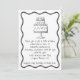 Moderna y caprichosa invitación a la fiesta de la tarta de cumpleaños en blanco y negro. La invitación perfecta a mano para cualquier celebración especial de cumpleaños. Todo el texto, los colores y las fuentes se pueden editar en la herramienta de diseño. Los gráficos caprichosos, dibujados a mano y el texto están rodeados por un borde de vieiras.