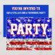Diseño de estrellas y rayas inspirado en las brillantes secuencias. Invitación con un diseño de personalizable rojo, blanco, gris plateado y azul para que puedas personalizar con tu propio texto, fotos e ideas. Imagen creada con técnicas digitales por Jess Perry. No contiene purpurinas o secuencias reales.