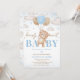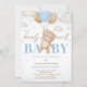 Celebra a tu bebé con esta adorable invitación de Fiesta de globos del oso azul para el bebé. Este dulce diseño presenta a un encantador oso sosteniendo globos azules y marrones, rodeado de nubes suaves y estrellas brillantes, creando un ambiente soñador y tranquilo. Establece el escenario para una celebración mágica y emotiva con esta dulce invitación del oso azul. BBS758