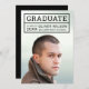 Moderna invitación para una fiesta de graduación con los detalles del graduado dentro de una cuadrícula en el frente. La tarjeta tiene un color de fondo modificable (haga clic en personalizar para cambiarla) en el reverso. Personalízalo reemplazando el texto del marcador de posición y reemplace la foto de ejemplo/marcador de posición con su propia foto. Para obtener más opciones, como cambiar el tipo de letra y su tamaño/color o el espaciado entre letras, haga clic en el botón "Personalizar". *Tenga en cuenta que la marca de agua Zazzle que aparece en la vista previa del zoom NO aparecerá en el producto impreso final. © Rosewood y Citrus