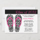 Invite a la familia y amigos a una fiesta de graduación con esta invitación que incluye Flip Flops rayados de cebra rosa y negra. Personalizar con los detalles de su Graduación.