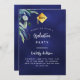 fiesta de graduacióngraduado graduadaescuela secundaria universidadazul marinofollajeazul y blancohojas de follaje de eucaliptomoderno y eleganteestudiantepromoción de 2026
