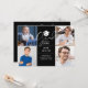 Una invitación de fiesta de graduación elegante que presenta cuatro fotos especiales y tipografía elegante sobre un fondo negro. Diseñada por Thisisnotme©