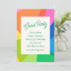Invite a amigos y familiares a una celebración alegre con esta invitación de fiesta de graduación brillante y audaz. Con un fondo abstracto de colores arcoíris y una fuente de escritura verde juguetona, este diseño aporta una energía vibrante y juvenil perfecta para cualquier graduado.