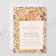 Celebra un hito con estilo con esta invitación de fiesta de graduación inspirada en el pasado con una paleta de colores cálidos y terrosos. El patrón floral intrincado en tonos de naranja, marrón, mostaza y verde oliva crea una estética vintage que recuerda al diseño de los 70. Un marco central de tonos neutros destaca el nombre del graduado y los detalles del evento, combinando estilos clásicos y modernos para una invitación atemporal.