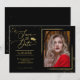 Invitación de guardar fecha de fiesta de graduación chic con foto con brillo dorado