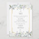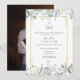 Con hermoso follaje de vegetación en acuarela y un borde geométrico dorado, esta elegante invitación de fiesta de graduación se puede personalizar con la foto de tu graduado en el reverso. Diseñado por Thisisnotme©