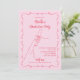Celebre el logro de su graduado con nuestra encantadora Invitación para la Fiesta de Graduación de la clase de 2026. Esta elegante invitación presenta una encantadora ilustración dibujada a mano de una mano sosteniendo orgullosamente un diploma, simbolizando logro y éxito. La fuente de estilo manuscrito agrega un toque personal, haciendo que cada invitación se sienta única y especial. En tonos de rosa y rojo de moda, esta invitación es perfecta para cualquier graduado que busque hacer una declaración elegante. Además, con la opción de incluir una foto del graduado, puede agregar un toque extra de personalidad a la invitación. Ya sea una graduación de escuela secundaria, una ceremonia de graduación universitaria o cualquier otro logro académico, esta invitación establece el tono para una celebración memorable. Con nuestras opciones de personalización fáciles, puede personalizar sin esfuerzo la invitación con los detalles de su evento, asegurando que sus invitados estén emocionados de unirse a las festividades. Haga que el día especial de su graduado sea aún más memorable con nuestra Invitación para la Fiesta de Graduación.