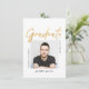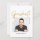 Celebre a su graduado con esta invitación de graduación simple y moderna diseñada en negro y blanco, con una foto central y la palabra "Graduate" en letra moderna FAUX Gold. Esta invitación limpia es perfecta para un graduado masculino como su hijo que se gradúa de la universidad o facultad.