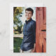 Una invitación de fiesta de graduación con tema de golf en blanco y verde con vegetación y una pelota de golf y palos de golf cruzados. Agrega una foto del graduado en la parte posterior.
