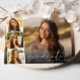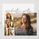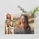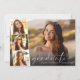 Invitación elegante y moderna para la fiesta de graduación y anuncio de graduación con la foto del graduado superpuesta con una tira de tres fotos cuadradas más pequeñas, "gracias" en una tipografía blanca delgada y elegante, y su nombre y año de graduación en tipografía blanca simple. En el reverso, agregue los detalles de la fiesta de graduación.