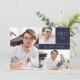 Esta invitación moderna para la fiesta de graduación de doctorado se puede personalizar con tus 3 fotos especiales de graduado y detalles de la celebración en tipografía dorada sobre un fondo azul marino. Diseñado por Thisisnotme©