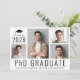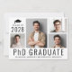 Invitación moderna a la graduación y fiesta de doctorado PhD con un collage de 4 fotos, "Graduado de PhD" escrito en la parte inferior en letras mayúsculas grandes y el año de graduación, nombre y universidad o facultad en tipografía simple. En el reverso, agregue los detalles de la fiesta.