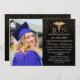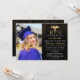 Invitaciones elegantes para la fiesta de graduación de enfermería con un fondo negro elegante, una foto del graduado, brillo dorado, el símbolo del caduceo y una plantilla de texto moderna fácil de personalizar. Hay artículos que combinan disponibles.