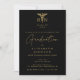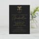 Esta elegante invitación de graduación de enfermería en negro y dorado se puede personalizar con los detalles de su graduación y una foto en el reverso. Diseñado por Thisisnotme©