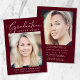 Invitación elegante de graduación y fiesta de graduación en rojo burgundy con "Celebración de Graduación" en una mezcla de tipografía blanca y moderna, su foto y su nombre, escuela y año de graduación en tipografía blanca simple. En el reverso, agregue otra foto y los detalles de la fiesta de graduación.