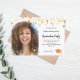 Añade tu propia foto de tamaño vertical del graduado. Marco fotográfico en forma de arco. Color de fondo blanco moda, decorado con estrellas de oro falsas. Personalice y agregue un nombre y detalles del fiesta.