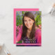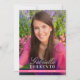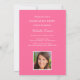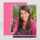 Invitación elegante para fiesta de graduación que presenta una foto completa en la parte frontal con el nombre moderno en letra cursiva y la tipografía clásica del apellido. Personalice el nombre, la escuela y el año de graduación. La parte trasera incluye un diseño rosa coordinado con detalles de la fiesta, RSVP y líneas de dirección para un aspecto limpio y pulido.