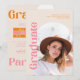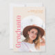 ¡Celebre a su graduado con esta invitación de fiesta de graduación con tipografía retro moderna! Incluya 4 fotos de su graduado y los detalles de su fiesta de graduación. Los tonos de crema, naranja y rosa seguramente harán una declaración audaz de estar orgulloso y orgulloso del logro de su graduado.