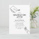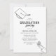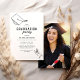 Invitaciones minimalistas para una fiesta de graduación con un simple dibujo lineal de la mano de una graduada y su birrete, una foto en la parte posterior, y una plantilla de texto moderna fácil de personalizar.