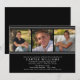 Celebre a su graduado con esta invitación de fiesta de graduación que presenta un diseño negro elegante y una tira de tres fotos en la parte superior. Los acentos de franja limpios y la tipografía moderna crean un look clásico y sofisticado para una celebración de escuela secundaria o universidad. Personalice el nombre, la escuela, la fecha, la hora, la dirección y los detalles de RSVP para que coincidan con su evento.