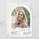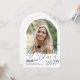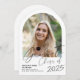 Elegante moda escritura a mano caligrafía guión escuela secundaria o universitaria simple minimalista invitación para graduación de arco con gorra de grado, foto de personalizado y plantilla de texto. Fácil de personalizar en ambos lados.