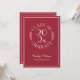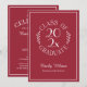 Envía elegantes invitaciones de graduación para la celebración de tu graduado con un emblema de tipografía blanca sobre rojo burdeos que dice: CLASE DEL [AÑO] GRADUADO con las palabras curvadas alrededor del año en el centro y hojas botánicas curvas a lo largo de cada lado del diseño circular. Debajo del emblema está el nombre del graduado en una fuente de escritura blanca y su escuela en una fuente serif elegante. Un rectángulo blanco fino crea un borde cerca del borde.