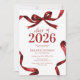 ¡Celebre el logro de su graduado con una elegancia inigualable! Nuestras invitaciones de fiesta de graduación 'Clase de 2026' de alta calidad combinan un fondo blanco atemporal con un clásico lazo de acuarela roja y borde de cinta. Junto con una plantilla de texto personalizable, estas invitaciones son una hermosa manera de conmemorar este evento que cambia la vida.
