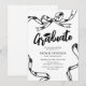 Celebre el logro de su graduado con estas invitaciones de fiesta de graduación que combinan un fondo blanco atemporal con un borde de lazo y cinta negro moderno dibujado a mano. Junto con una plantilla de texto personalizable, estas invitaciones son una forma hermosa de conmemorar este evento que cambia la vida.
