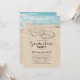 Invitaciones de fiesta de graduación de playa con un fondo de isla de playa tropical de verano, una playa de arena vintage con dos corazones en la orilla, el año de graduación y una plantilla moderna de fiesta de graduación.