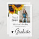 Rústico estilo rural 4 Festividad de graduación de collage de FOTOS elegante plantilla de invitación sobre fondo blanco (color cambiante) con grandes ramos de girasoles dorados amarillos. ++++++++++++++++++ Personalice el texto y las imágenes en ambos lados. ++++++++++ La invitación es adecuada para fiestas de graduación de campo rústico en jardín exterior/patio trasero. ++++++++++++++++ Si necesita ayuda para personalizarla, póngase en contacto con el diseñador a través del botón MENSAJE que aparece a continuación.