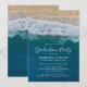 Invitaciones de fiesta de graduado con tema de playa con un fondo de isla de playa tropical de verano y una plantilla de invitación de fiesta de graduación moderna.
