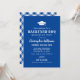 Invite a amigos y familiares con esta invitación de fiesta de graduación azul que presenta un titular destacado “Backyard BBQ”, un icono de gorra de graduación y tipografía rústica limpia. Perfecto para una parrillada casual, casa abierta o celebración de verano en el patio trasero. La parte trasera presenta un patrón de gingham azul real y blanco coordinado para un ambiente clásico de picnic. Personalice con el nombre de su graduado y los detalles de la fiesta.