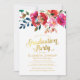 Invitaciones elegantes de fiesta de graduación que presentan un fondo blanco clásico, un despliegue floral de acuarela rosa y roja, un título tipográfico con falso dorado y una plantilla moderna para la fiesta de graduado.