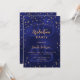 Una glamorosa tarjeta de invitación para una fiesta de graduación para él y ella. Un fondo azul marino adornado con falsas estrellas doradas. El color azul es desigual. Personalice y agregue un año, nombre, año y detalles del fiesta. El texto Graduación y el nombre están escritos con escritura de estilo con letras a mano moderna. Texto dorado. Fondo azul marino y estrellas doradas.