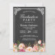 Modifique esta "invitación floral de la fiesta de graduación para requisitos particulares del capítulo de la pizarra" a invitar a sus amigos y familia a su fiesta del graduado. Es fácil personalizar para ser únicamente el suyo.