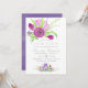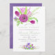 Invitaciones de fiesta de graduación de primavera con acuarela botánica con tendencias de ultra violeta, ciruela y acentos verdes de salvia. Las flores presentadas son ranúnculos, tulipanes, violetas y crocus con una fuerte influencia china impresionista.