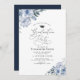 sencillo y elegante guión negro y polvorientas flores azules. El texto y los colores se pueden editar.