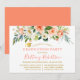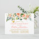 La tarjeta de invitación de graduación de acuarela rosa elegante moderna incluye rosas de melocotón coral, flores blancas y hojas de vegetación botánica. Letra de caligrafía de moda. Gorra de graduado dorada.