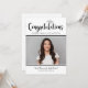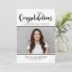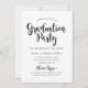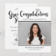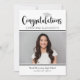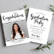 Celebra a tu graduado con esta invitación moderna en negro y blanco para fiesta de graduación que presenta un texto en negrita “Felicitaciones” y un acento de gorra de graduación plateada. Agrega una foto favorita y personaliza el nombre y los detalles de la escuela. El reverso incluye tipografía coincidente de “Fiesta de Graduación” con información de la fiesta limpia y fácil de leer.