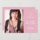 Esta minimalista invitación de graduación presenta un diseño moderno con una paleta de colores rosa y blanco bonito. Agrega tu foto favorita del nuevo grado y edita la plantilla de texto con el nombre del graduado, el año de graduación y la escuela. Un gorra de graduación de oro se sienta por encima del diseño de la tipografía. Los detalles de la fiesta de graduación se pueden agregar al dorso de la tarjeta.