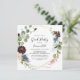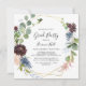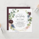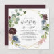Esta invitación de fiesta de graduación geométrica de oro borgoña es perfecta para una celebración moderna. El elegante diseño boho cuenta con flores de color azul marino acuarela, rosa pálido y vino con detalles artísticos a lápiz.