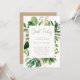 Moderna invitación para una fiesta de graduación botánica con el título "Grad Fiesta" en un elegante tipo de letra manuscrita junto con los detalles en el interior de un marco geométrico rodeado de vegetación tropical pintada con acuarela y falsas hojas de oro. El reverso es un tono dorado a juego. Este diseño es perfecto para un chica graduado.